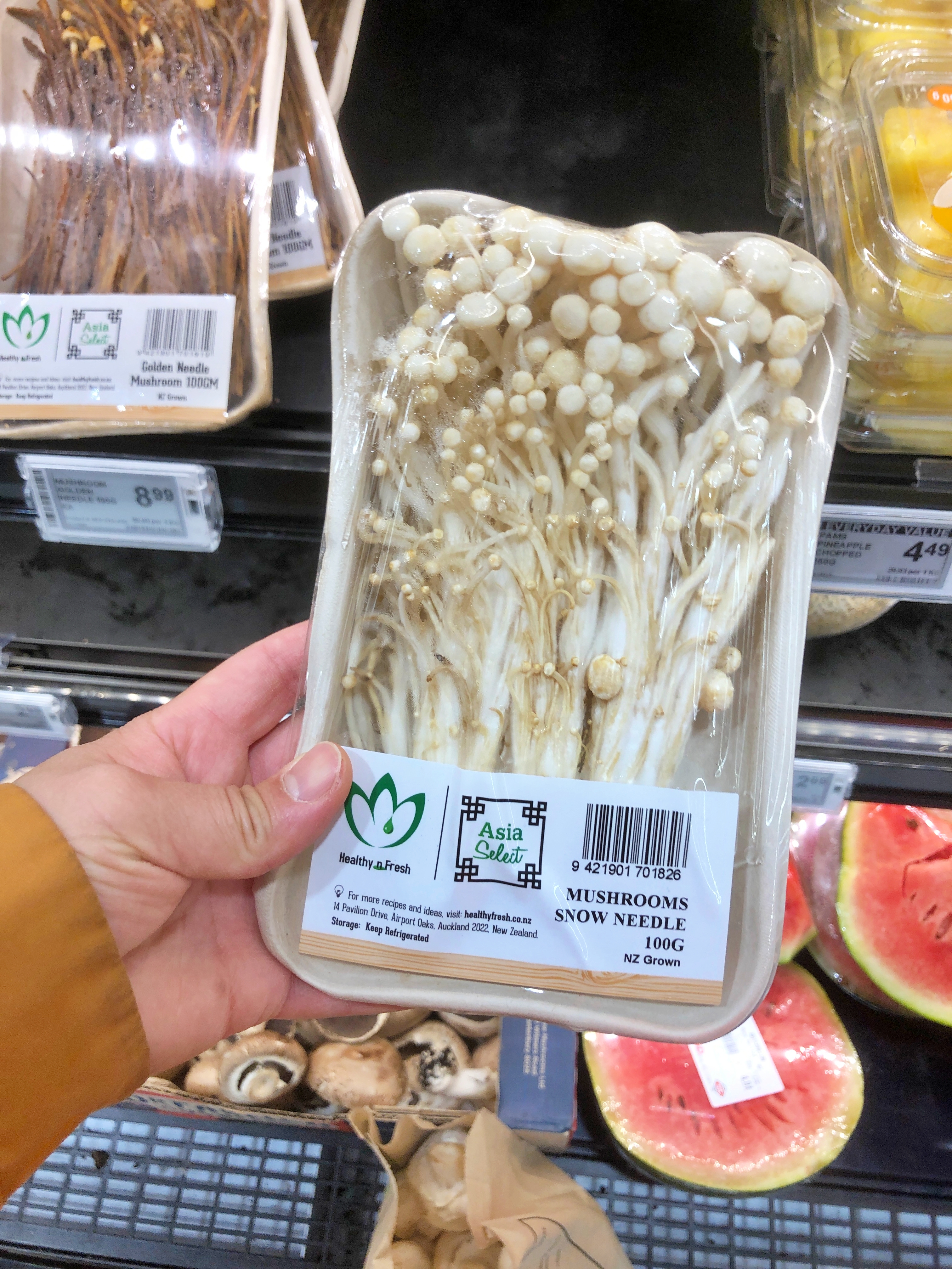 우연히 신선코너에 입점된 팽이 버섯을 발견했다. 뉴질랜드 마트에는 보통 양송이 버섯과 포토벨로 버섯 정도만 판매하는데 이걸 본 건 처음이다. 하지만 가격을 보고 굉장히 충격 받았다. 한 줌도 안될 것 같은 양의 팽이 버섯이 무려 $8.99(7,600원)이라니... 두툼한 팽이버섯 3봉지 묶어서 1천원에 구입하던 한국이 좋았지. 가격이 양송이 버섯만큼 내려가려면 몇백년은 걸릴 것 같다.