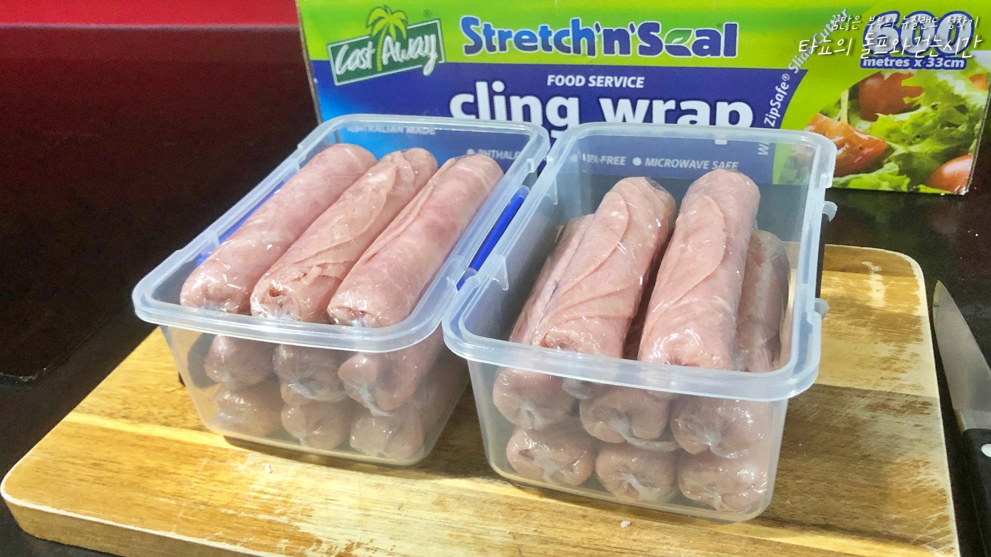 샌드위치 햄 소분의 날이 돌아왔다. 워낙 양이 많아서 생각보다 꽤 오래 사용하는 편이라 나는 구입한 즉시 바로 냉동시킨다. 신랑 샌드위치를 쌀 때 보통 3장을 한번에 넣는 편이라 3장씩 겹쳐서 돌돌 말아서 소분한다. 비닐랩으로 싸서 통에 보관하면 쓰기 좋다. 사용하기 한 두시간 전에 미리 빼놓으면 실온에서 구입했을 때의 모양새로 사용이 가능하다. 시간이 촉박할 때는 렌지에 후딱 돌려서 녹인 다음 살짝 구워서 사용한다.
