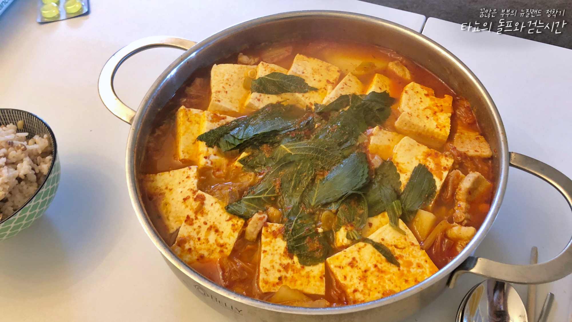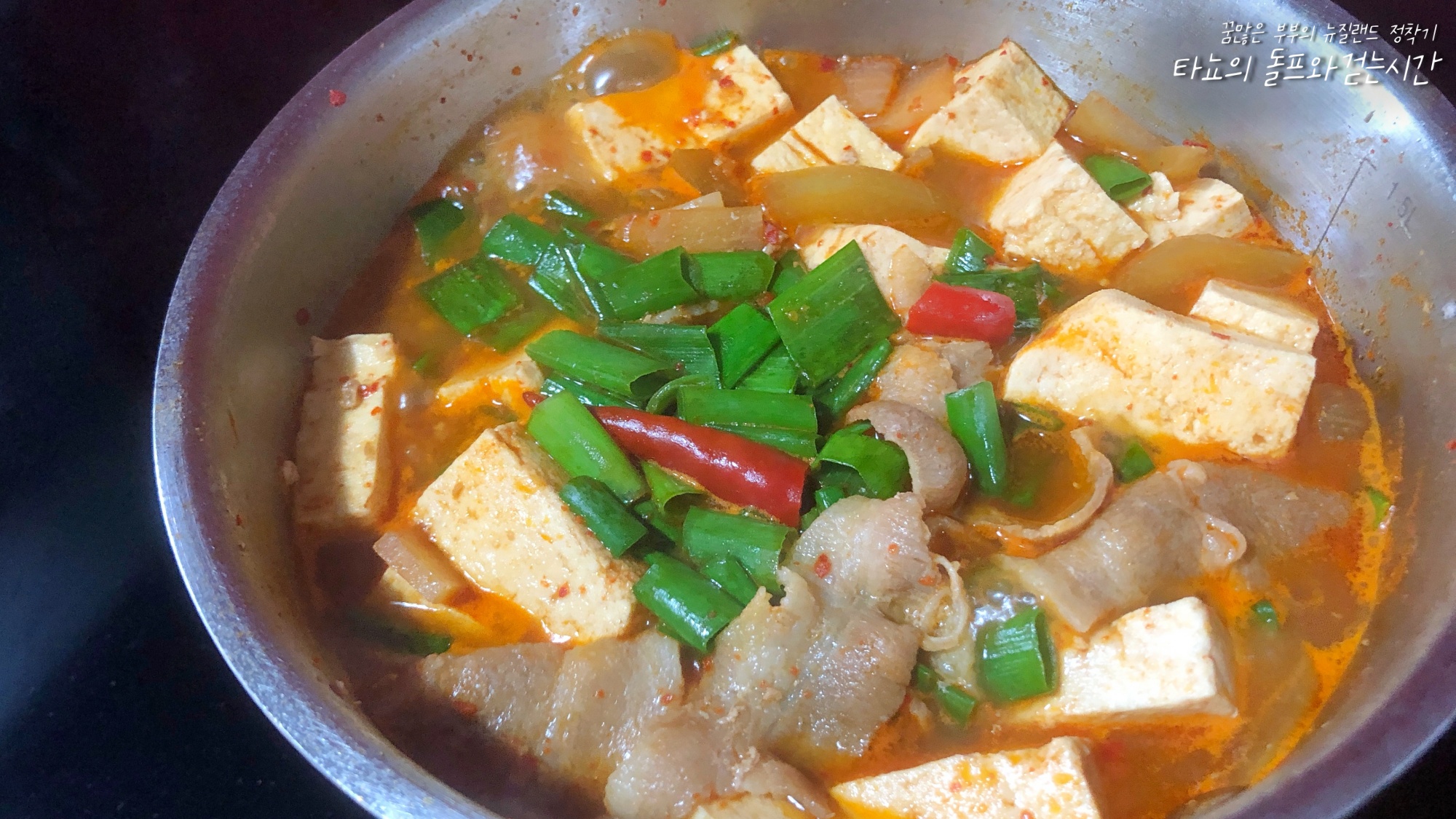 지인에게 받은 삼겹살로 김치찌개를 끓였다. 두부도 듬뿍 넣고 매콤하게 끓여서 먹었는데 밥 2 공기씩 먹었던 것 같다.