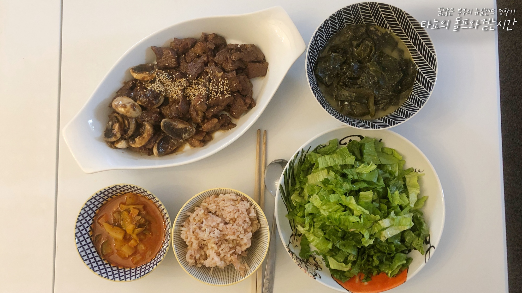신랑이 한국에서 먹던 고깃집 갈비가 먹고 싶다고 해서 양념을 만들어 고깃집 갈비를 구웠다. 비주얼은 좀 달라도 맛은 그 맛이다. 나는 미역국을 곁들였고 신랑은 플메 제이미가 만들어둔 찌개를 곁들였다.