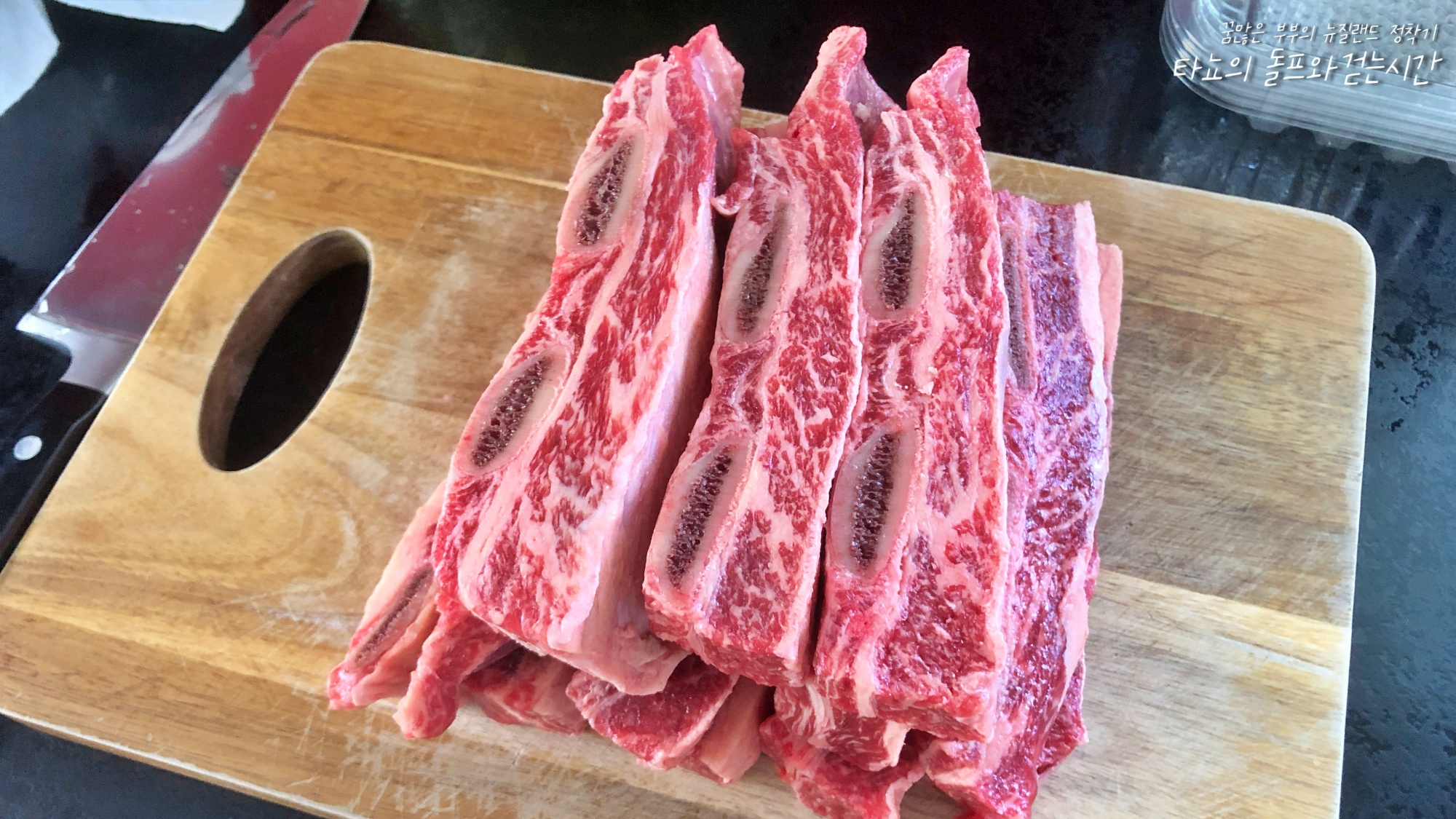 격리생활 힘내라고 지인이 선물한 소갈비다. 파킨 세이브에서 구입했다는 이 소갈비는 마블링이 엄청났다. 뉴질랜드에서 이런 소고기 구하기 어려운데... 그대로 얇게 떠서 구워 먹고 싶은 충동이 들었지만,