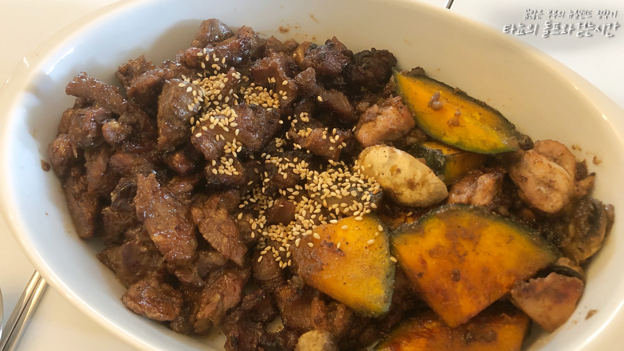 이번에는 남은 양념에 단호박을 넣어서 같이 졸여 먹었는데 세상 맛있었다.