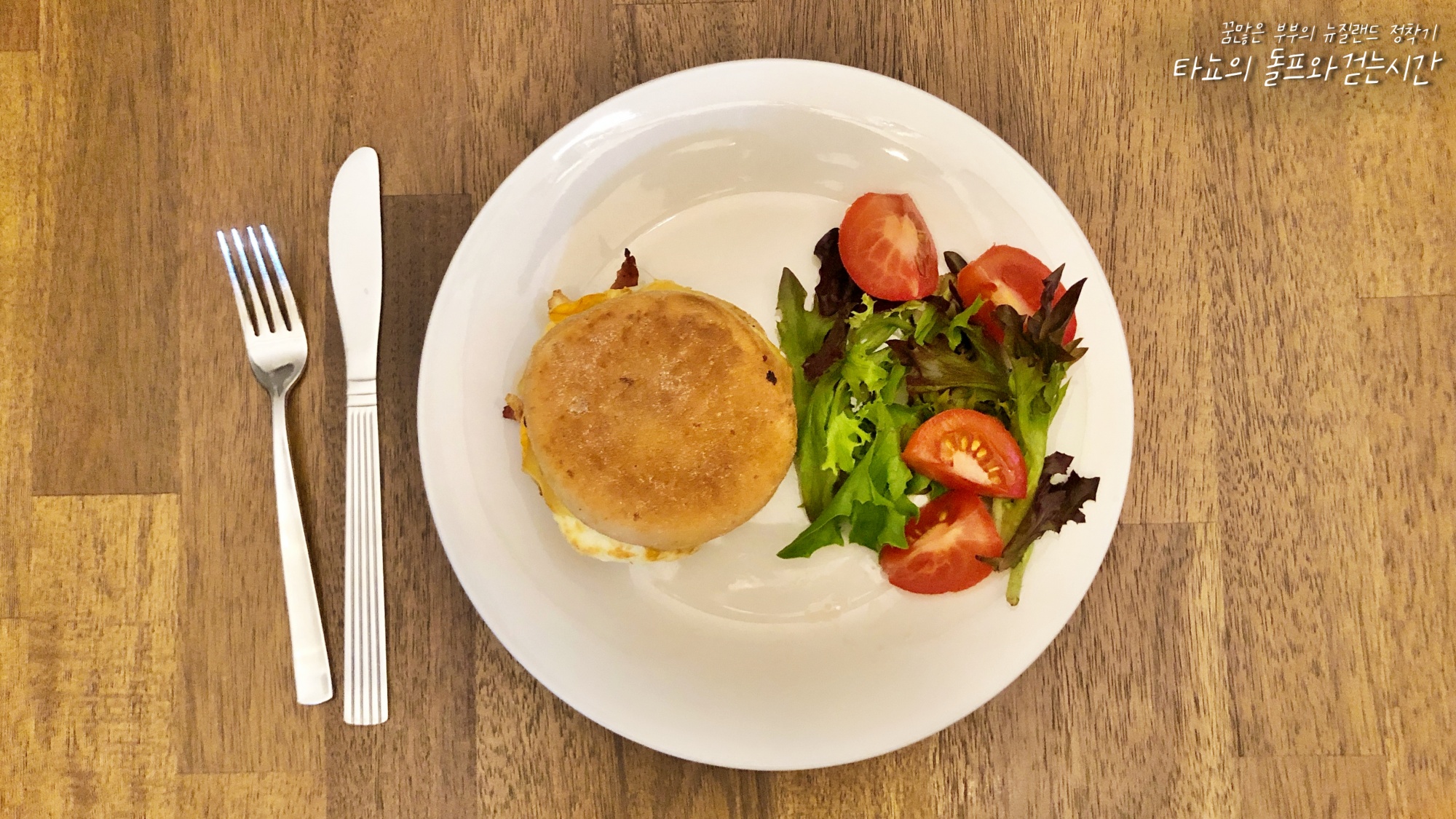맥모닝 스타일로 아침 식사를 준비했다. 조금 차이가 있다면 신선한 샐러드가 준비되었다는 점이다.