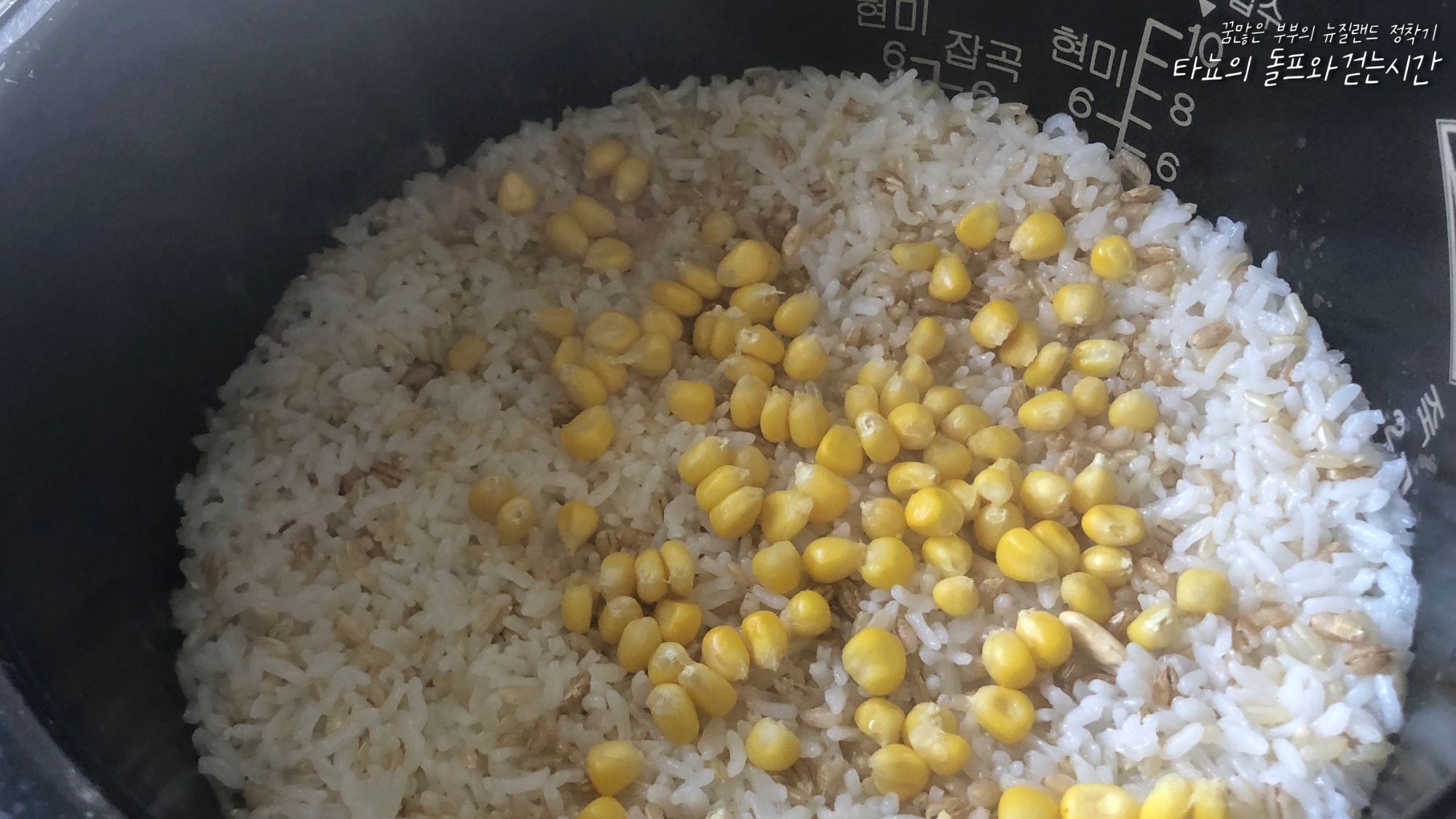 그렇게 얼려둔 옥수수를 밥 지을 때 한 줌씩 넣으면 참 맛있다. 달콤하게 씹히는 게 맛도 좋고 식감도 좋다. 신랑이 많이 좋아해서 옥수수 넣은 밥을 2주 가까이 준비했었다.