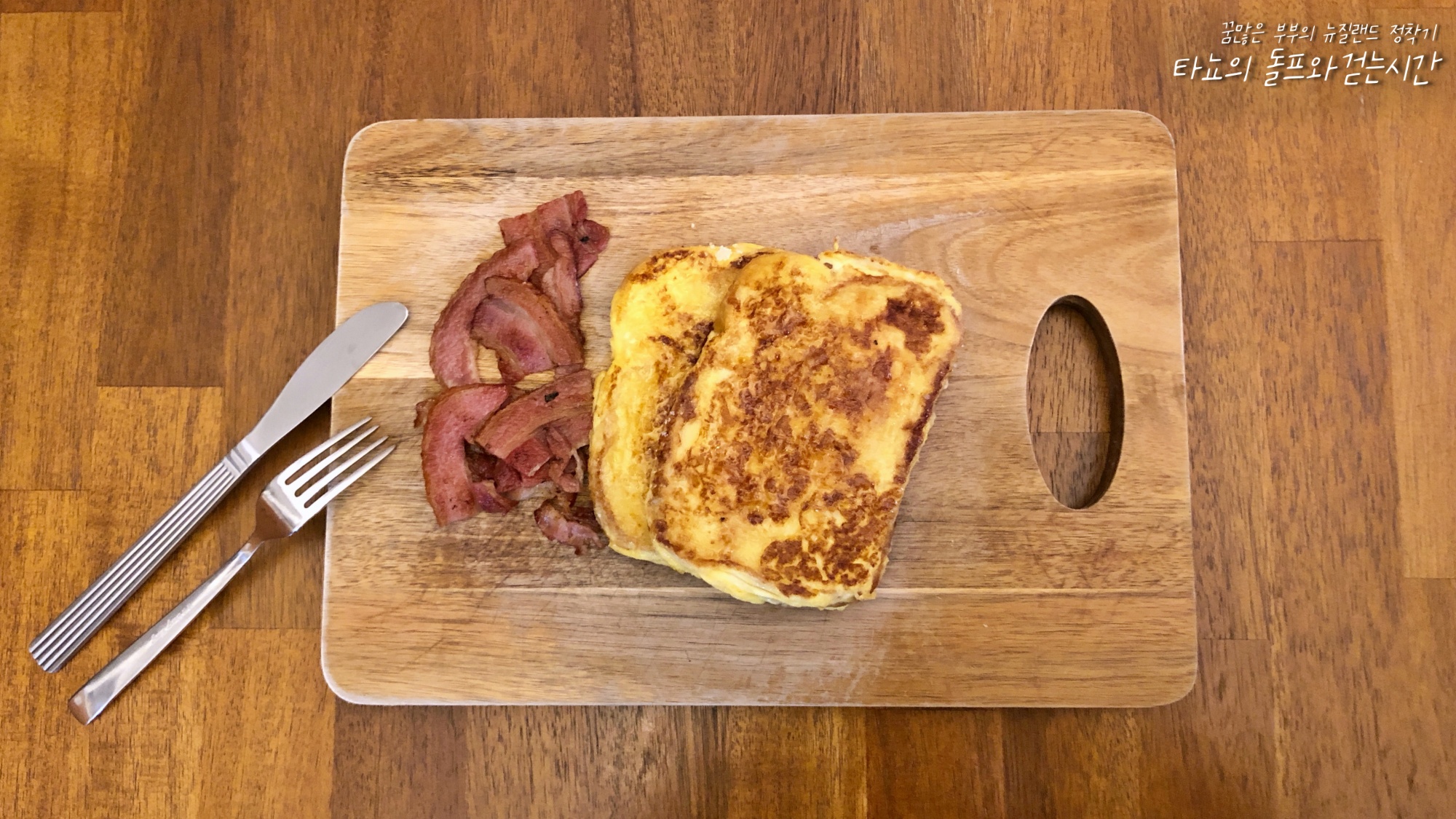 달걀물을 입혀서 토스트를 굽고 설탕 솔솔 뿌려서 준비했다. 바삭하게 구운 베이컨도 곁들였는데 단짠 조합이 좋아 신랑이 좋아했다. 일상으로 돌아간 신랑이지만 아직은 목이 불편하다고 했는데 프렌치토스트는 부드러워서 먹기가 좋았다고 한다.