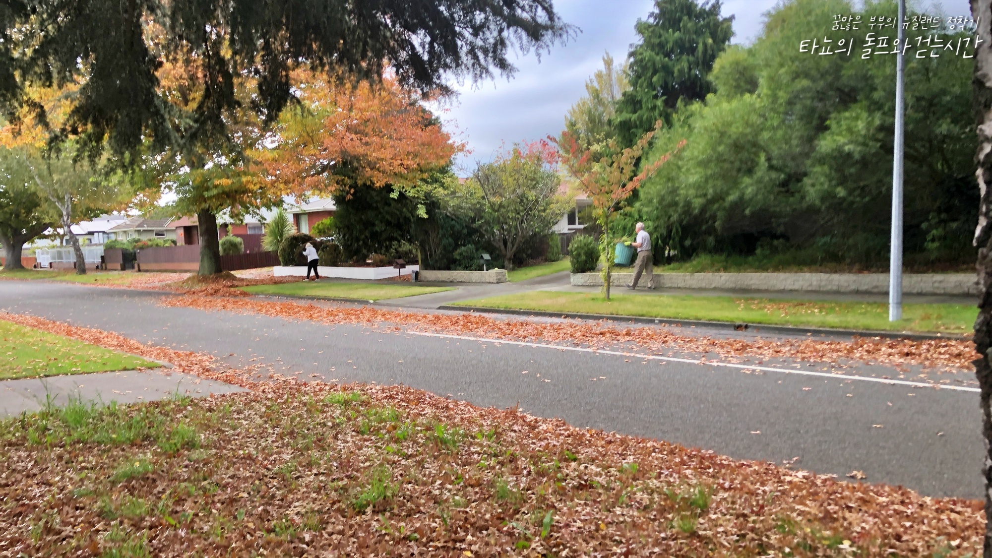 내가 살고 있는 이 동네는 치치에서 가장 학군이 좋기로 유명한 곳이다. 또한 형성된 지 오래된 안전한 동네이기도 하다. 그래서 집들도 하나같이 옛날 스타일이고 가든은 엄청나게 넓은 편이다. 집 안팎에 나무가 얼마나 많은지 모른다. 숲 속에 동네가 형성된 것인지, 동네에 숲이 만들어진 것인지 헷갈릴 정도이다. 어쨌든 그 덕에 동네 주민들은 가을 내내 참 바쁘게 살아간다. 가로수에서 떨어지는 낙엽을 정리하는 것도 그들의 몫이기 때문이다. 자신의 집 앞 인도와 잔디에 떨어진 낙엽을 잘 쓸어서 쓰레기통에 버리거나 도로변으로 모으면 주기적으로 청소차가 지나가면서 낙엽을 모두 수거한다. 하지만 매일 저만큼 쌓이는 낙엽과 씨름을 하다 보면 몸살 나기 십상이다.
