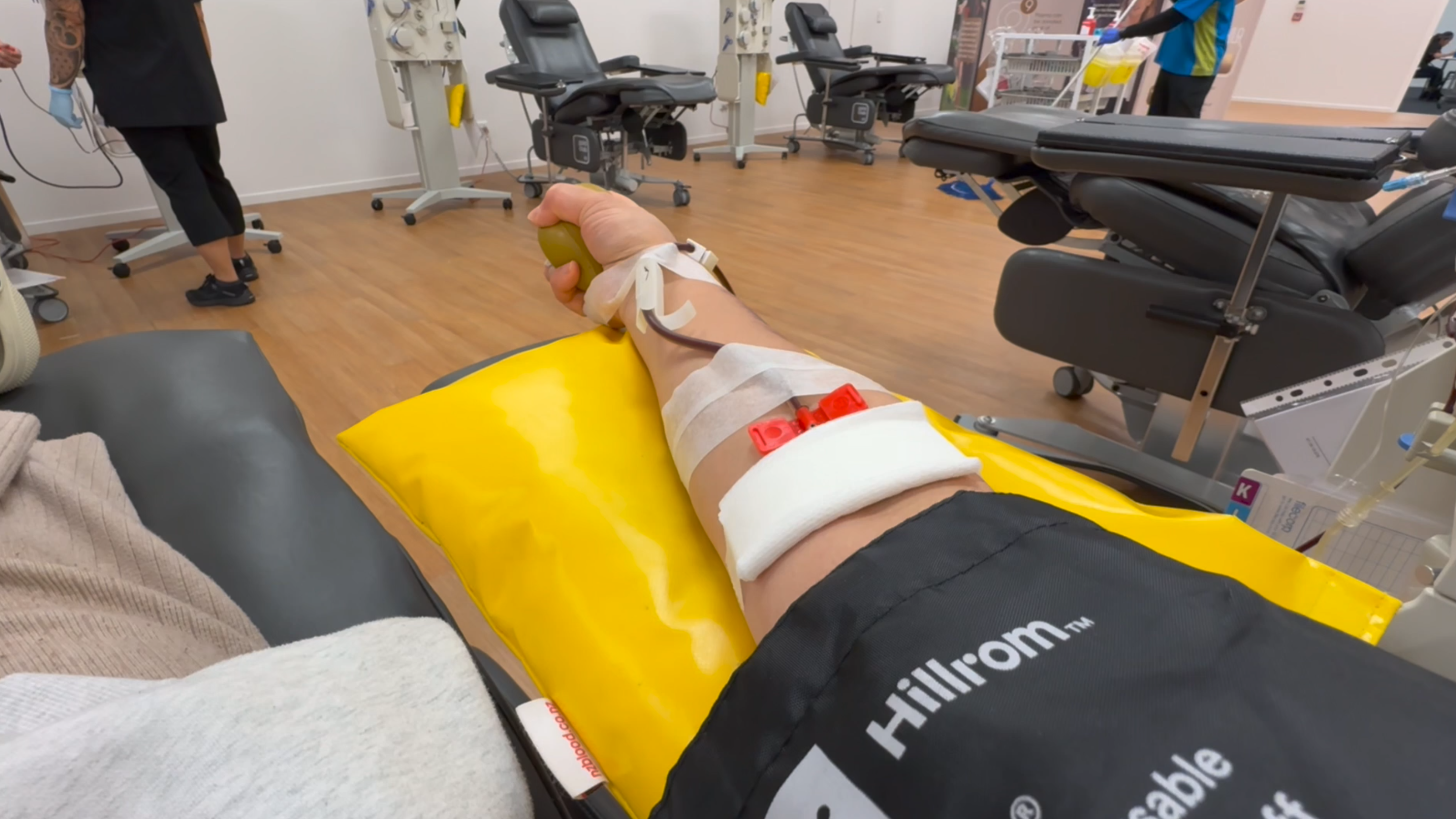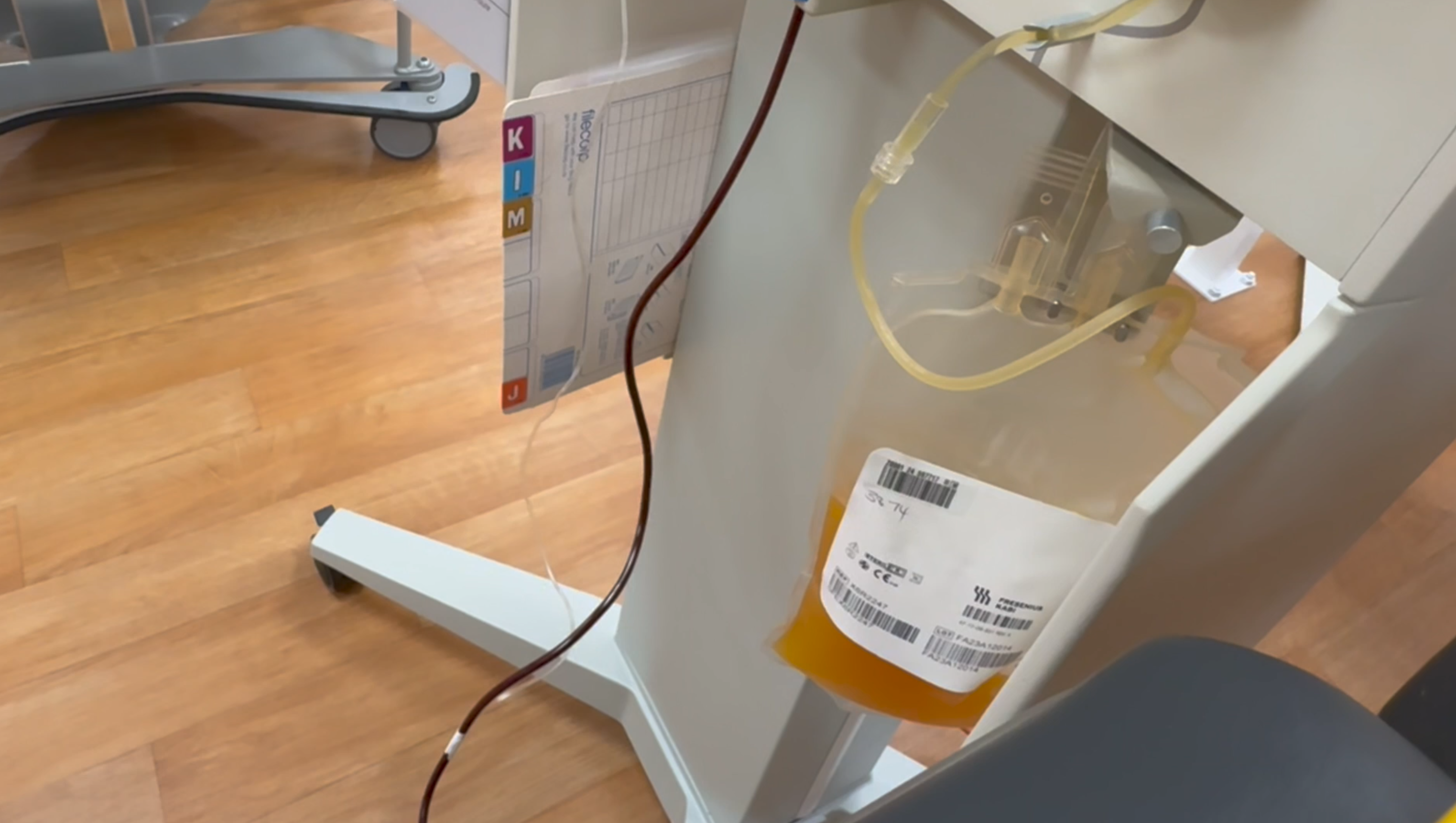 플라즈마 헌혈은 사진에서 보이듯 노란색 피를 뽑아간다. 먼저 피를 뽑은 다음, 기계를 통해 혈장을 분리하고 나머지 피는 다시 내 몸속으로 쏙 넣어주기 때문에 몸에 큰 부담이 없는 헌혈이다. 그래서 전혈 헌혈과 달리 2주에 한번 헌혈이 가능하다. 단점이 있다면 한번 헌혈하는 데 걸리는 시간이 무려 1시간이라는 것. 피의 양은 보통 자신의 몸무게와 비례한다. 몸무게가 60kg이면 600ml 정도를 헌혈한다고 볼 수 있다.