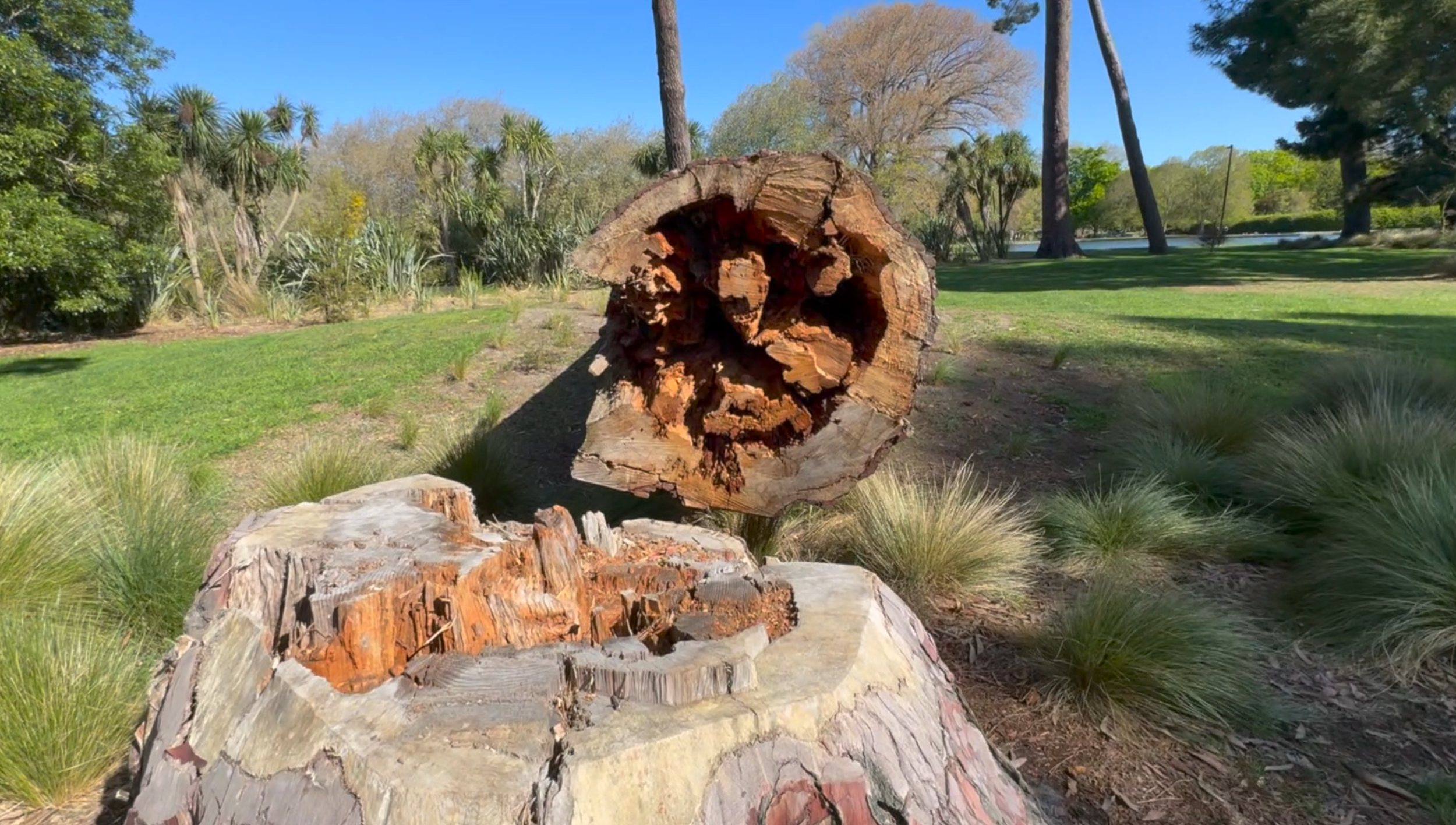 죽은 소나무를 베어 치우는 것이 아니라 보존하는 방향을 선택했나보다. 쓰러진 나무에 공간을 만들어 벤치를 만들었다.