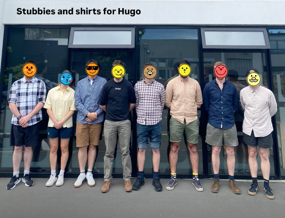 첫 번째 이벤트는 바로 'Stubbies and shirts day'이다. 스터비는 1970년대에 뉴질랜드에서 유행했었던 반바지 문화인데, 현재 뉴질랜드에서는 직장인들의 사무실 출근 마지막 날 입는 문화로 자리 잡혔다고 한다. 퇴직을 하든, 이직을 하든 간에 서로가 느낄 수 있는 약간의 어색함을 풀어주고자 이런 문화를 만든 것이라고 한다. 평소 사무실 출근할 때는 그래도 적당히 포멀하게 입는 편이지만, 이 날 만큼은 반바지에 발목이 긴 양말과 운동화를 신어 최대한 캐주얼한 분위기를 만드는 것이다. 모든 직원들이 퇴사자를 위해 서프라이즈 스터비를 준비했었다. 사실 우리 남편은 꽤 추웠다고 한다. 어쨌든 덕분에 분위기가 좋았단다.