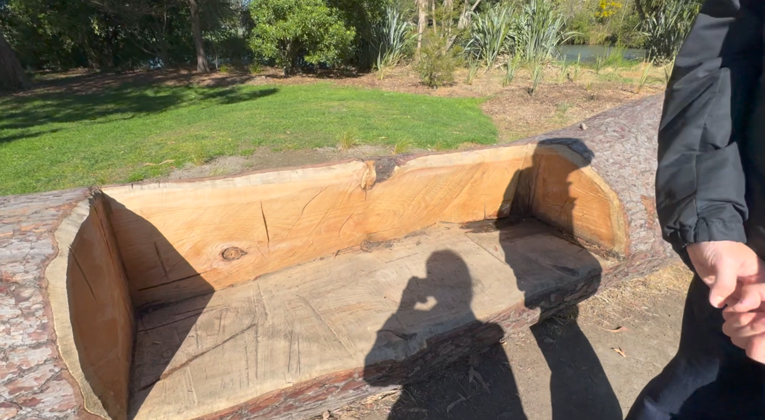 죽은 소나무를 베어 치우는 것이 아니라 보존하는 방향을 선택했나보다. 쓰러진 나무에 공간을 만들어 벤치를 만들었다.