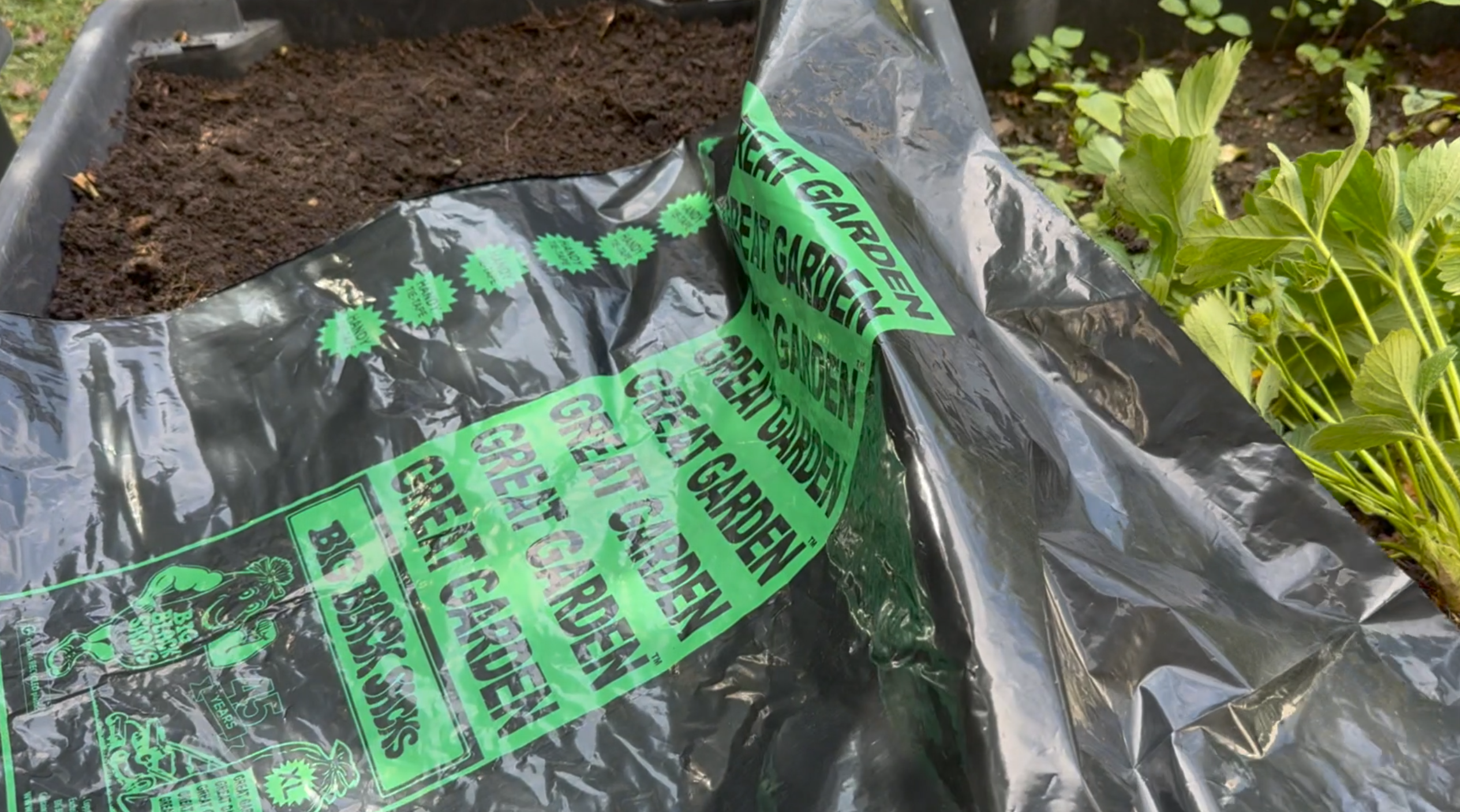 이건 쓰레기 봉투인데 딸기 심을 때마다 유용하게 잘 쓰인다. 이런 비닐을 마이터텐이나 버닝스에서 구입하는 것보다 집에 있는 비닐봉지 하나 잘라 쓰는 게 생각보다 훨씬 저렴하게 치인다. 특히 나는 바스켓을 사용하기 때문에 사이즈가 딱이다.