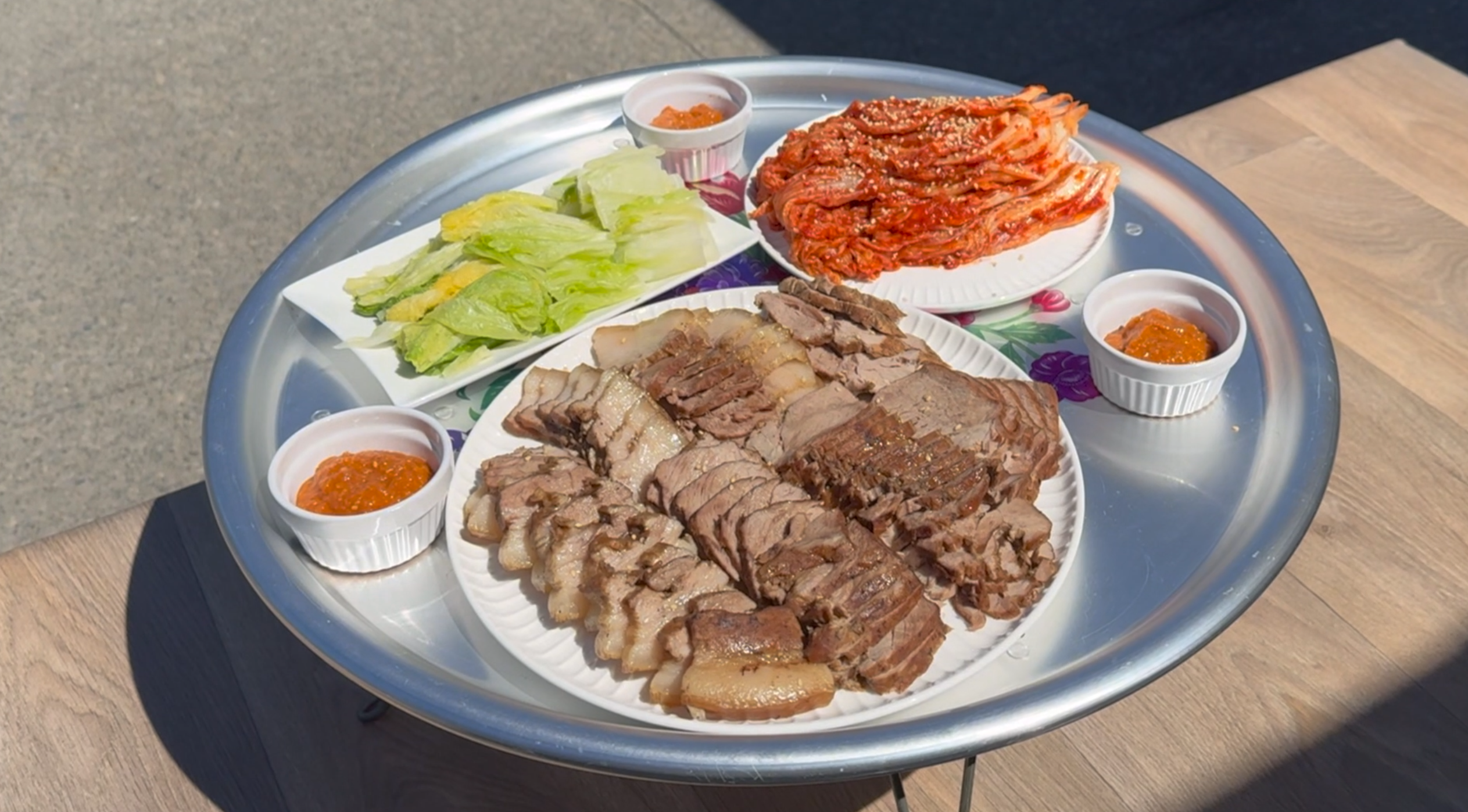텃밭 일하고 먹으면 딱인 보쌈 한상, 친구들과 함께 김치도 만들고 수육도 삶았다. 이번에는 숄더를 사서 삶았는데, 부위나 맛이 딱 한국에서 먹던 앞다리 사태다.