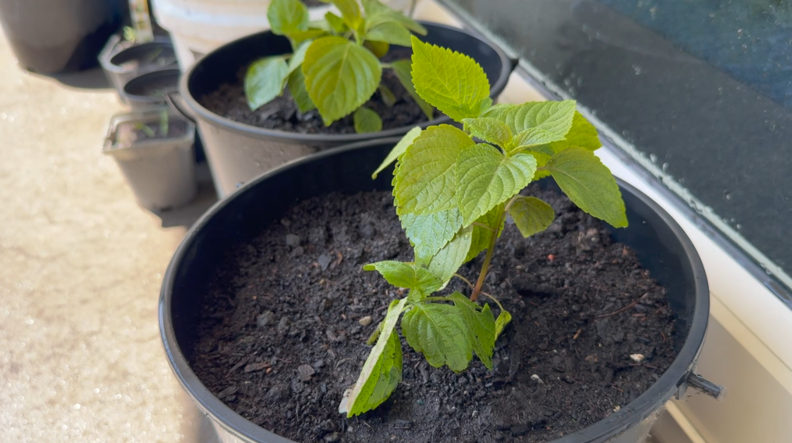 유독 더 잘 자란 녀석들을 골라 다른 곳으로 옮겨 심었다. 깻잎은 2 뿌리 정도 같이 심어도 잘 자란다. 이렇게 심어주면 보통 1미터 정도 높이로 자라는 것 같다. 땅에 심으면 더 잘 자랄 테지만, 아쉽게도 땅이 넉넉하지 않다.