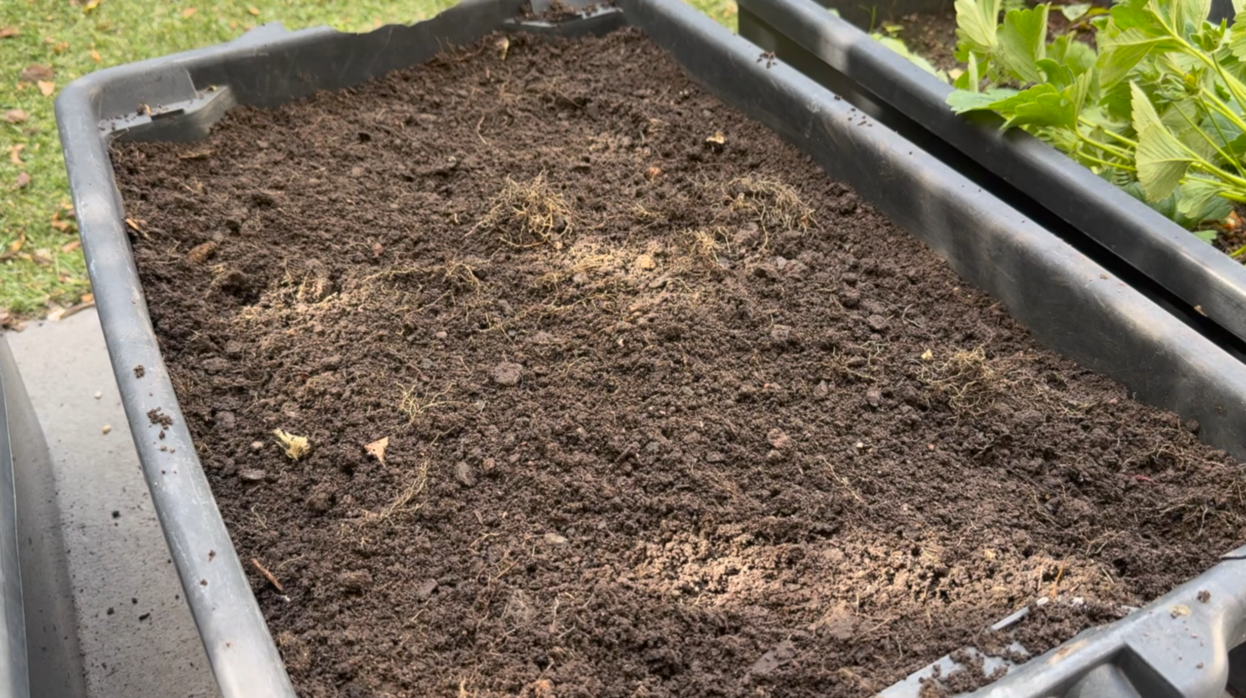 이건 친구집으로 분양 갈 깻잎 모종들이다. 흙채로 떴더니 한 박스가 모였다.